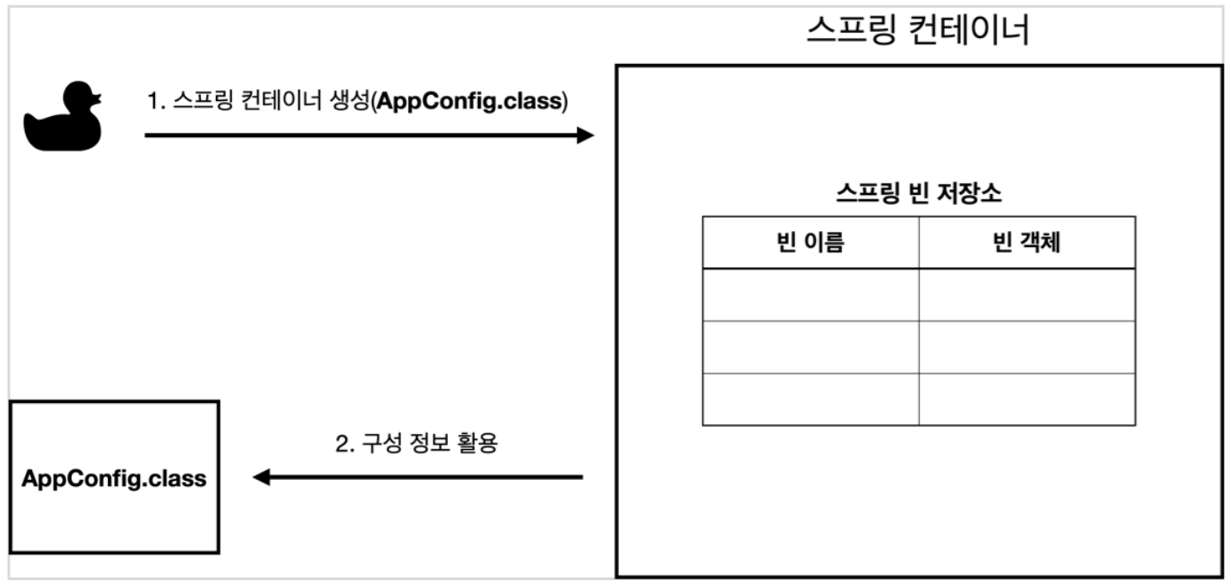 스프링 컨테이너는 파라미터로 넘어온 설정 클래스 정보를 사용해서 스프링 빈을 등록한다.
