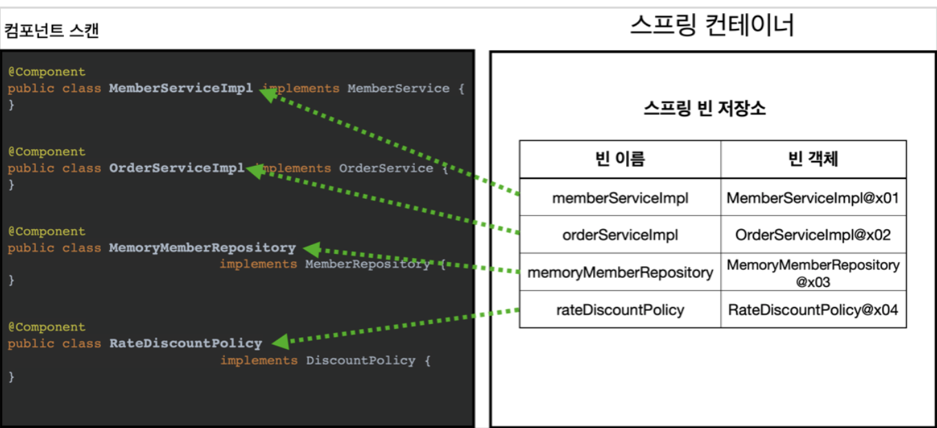 - ComponentScan은 Component가 붙은 모든 클래스를 스프링 빈으로 등록한다.