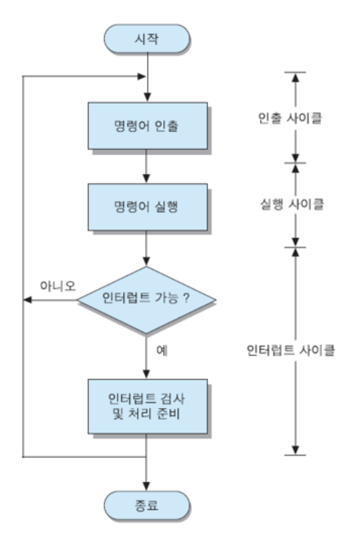 - CPU가 한 개의 명령어를 실행하는 데 필요한 전체 과정