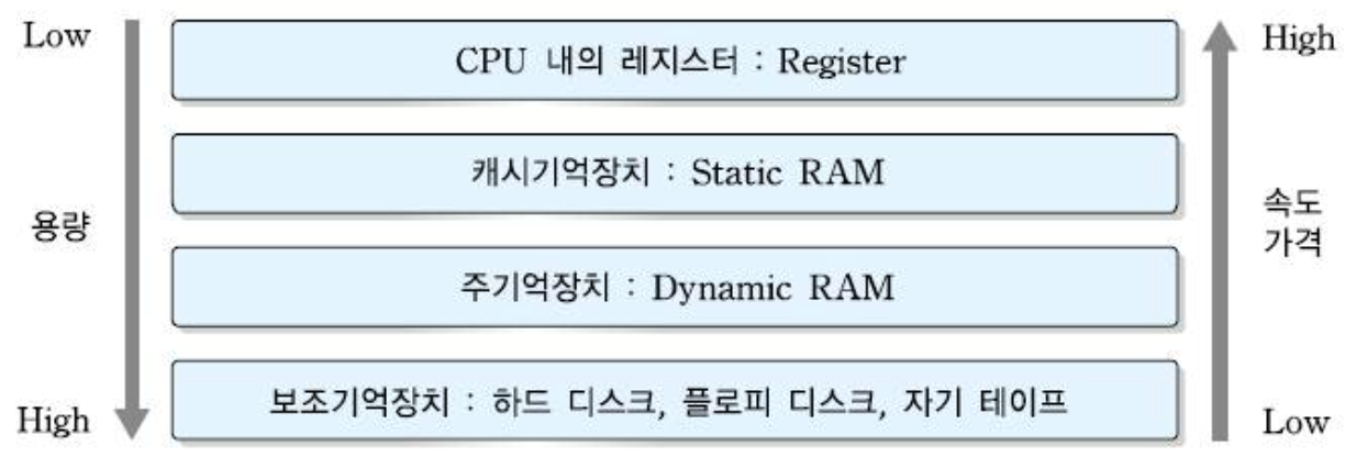 - 용량이 커질수록 액세스 속도는 낮아진다.