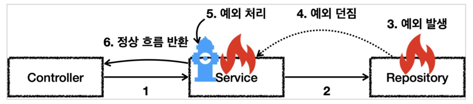 - 만약 예외가 java.sql.SQLException 이라면 service, controller 계층에서도 throws SQLException을 선언해야 한다.