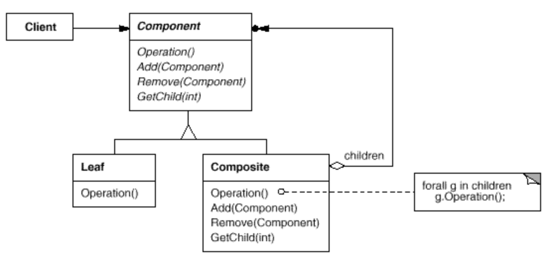 - Component에 선언된 인터페이스를 통하여 부분과 전체를 동일하게 처리