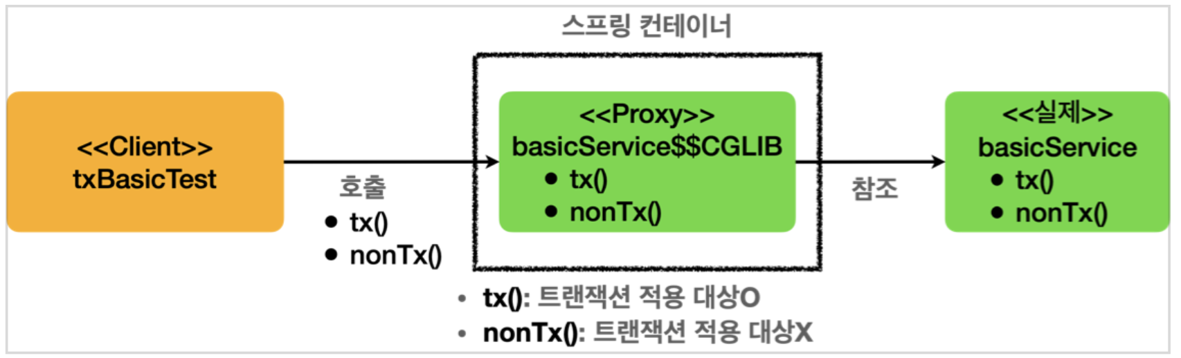 - 위 케이스에서 tx()의 경우 프록시 객체가 호출되고 트랜잭션이 적용된다.