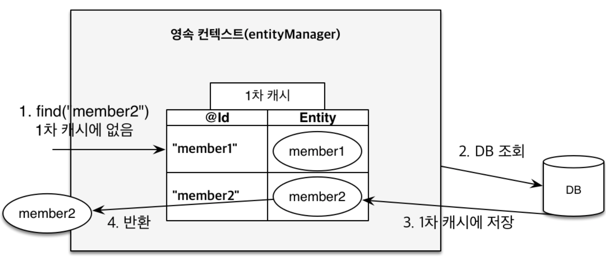 Member findMember2 = em.find(Member.class, "member2");