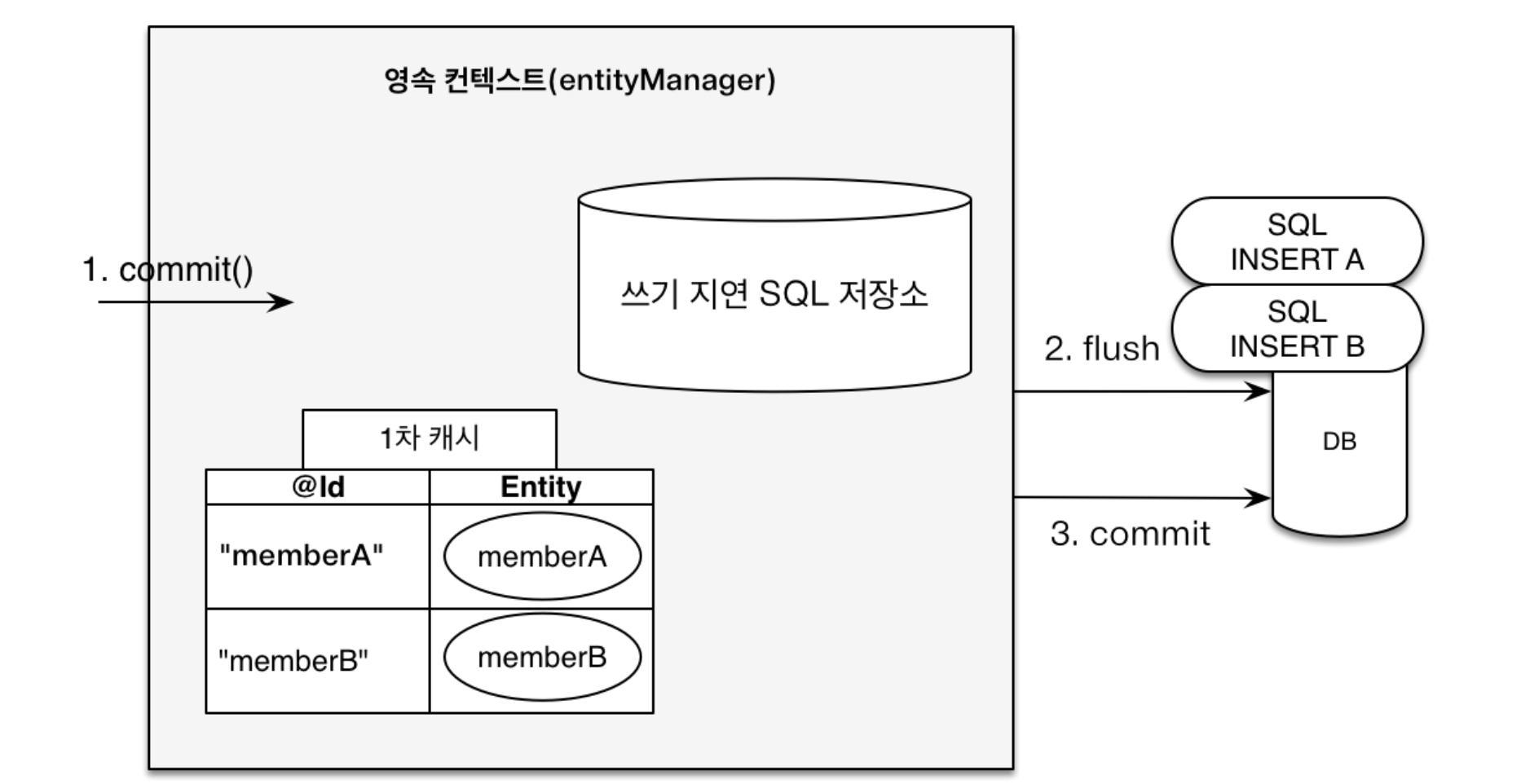 // 커밋하는 순간 데이터베이스에 insert sql을 보낸다