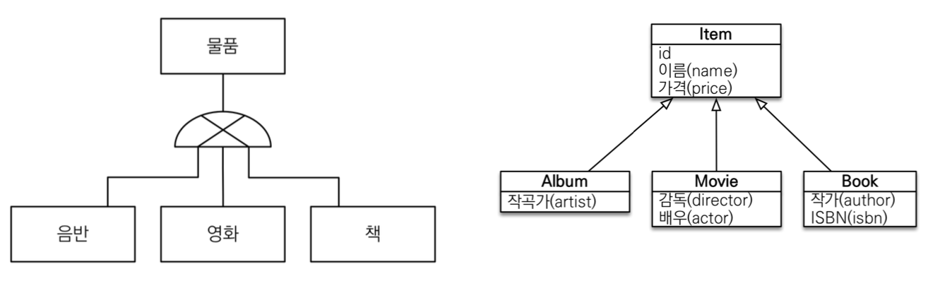 - 상속관계 매핑 : 객체의 상속과 구조와 DB의 슈터파입 서브타입 관계를 매핑