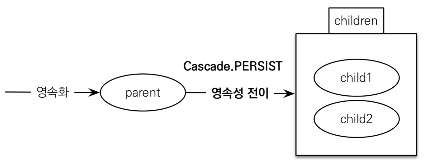 - 특정 엔티티를 영속 상태로 만들 때 연관된 엔티티도 함께 영속 상태로 만들 수 이싿.