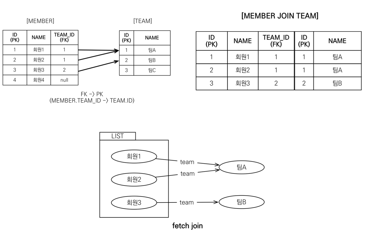 - 객체 그래프를 SQL 한 번에 조회하는 개념