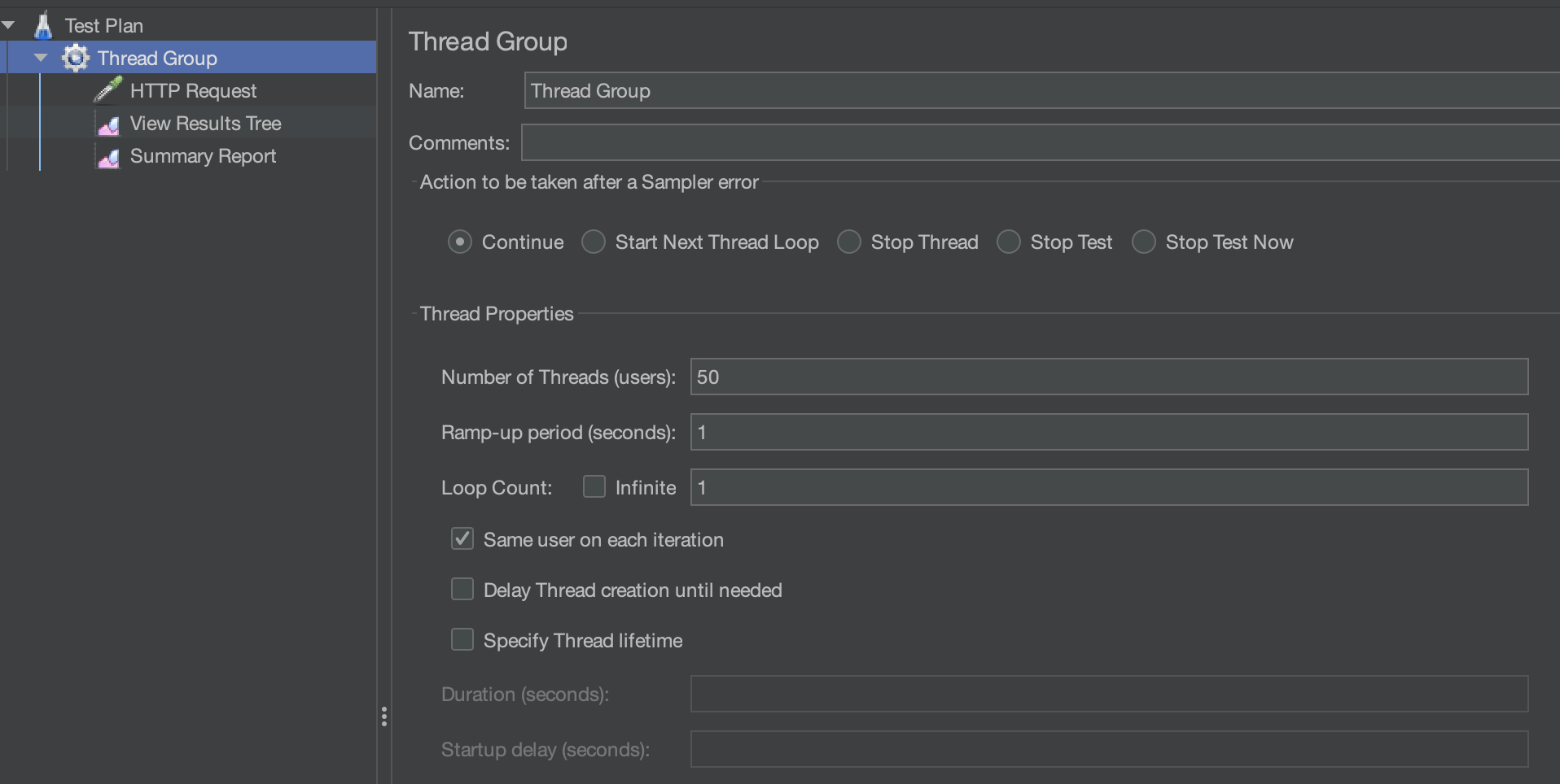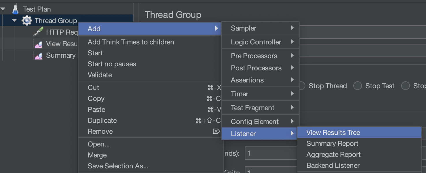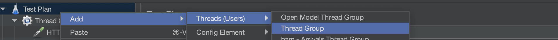 - 테스트는 Thread Group 을 생성하는 것을 시작으로 한다.