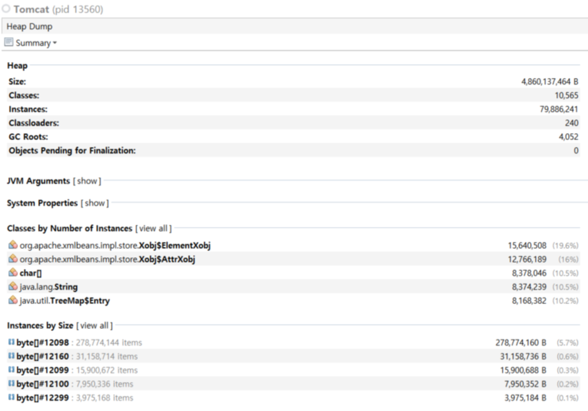 때문에 처음 OOME 가 발생했다는 얘기를 들었을 때 우선 Xmx, Xms 설정을 다시 하였고