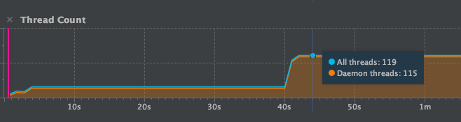실제로 thread 가 100개 이상으로 치솟았고