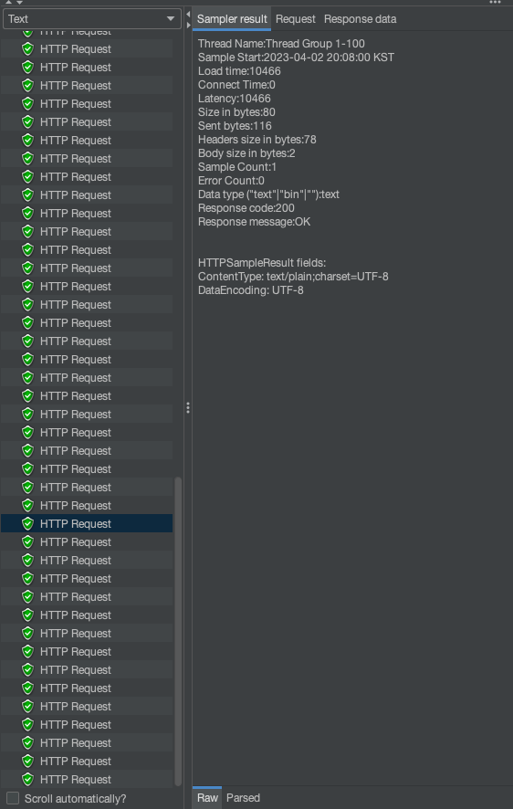 JMeter 로 확인한 결과 모두 제대로 된 응답을 받았다는 것을 확인할 수 있었습니다.