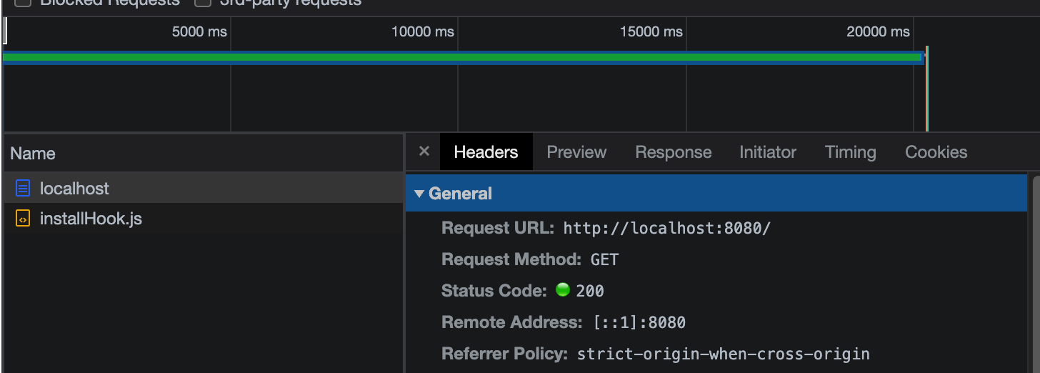 첫번째 요청에서 Thread 가 Block 되어 대기하고 있다가, 다시 한 번 요청을 보내 총 20초가 걸린 것으로 유추할 수 있습니다.