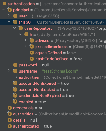다시 authentication 내부에는 principal, credentials, authorities 가 들어있게 됩니다.