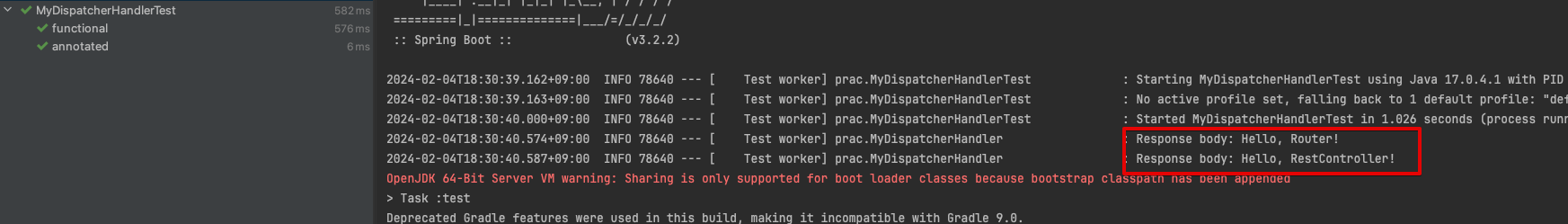 요청이 올 때마다 mappingRegistry 에서 찾아 HandlerFunction 으로 반환하여 실행할 수 있게 합니다.