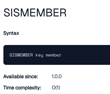 sismemeber, sadd, scard 는 O(1) 로 아주 빠른 속도를 갖고 있기 때문입니다.