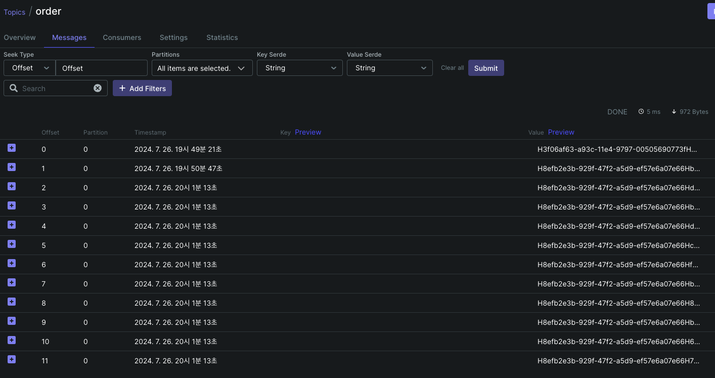 또한 저희는 Kafka Messaging 을 TransactionalEventListener 로 제어했으니 10개의 요청만 날아갔는지 확인할 필요가 있습니다.