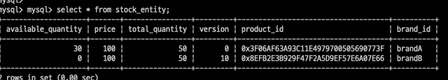 재고는 정상적으로 0, version 은 10으로 확인할 수 있습니다.