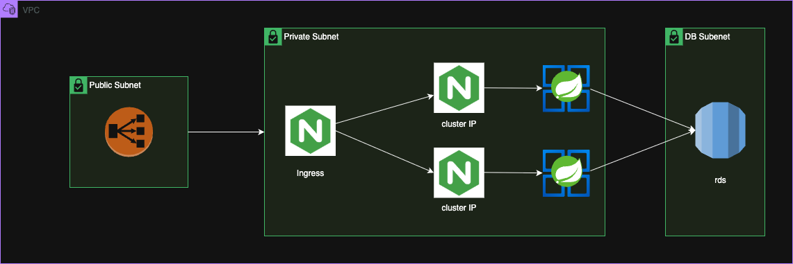 이 글에서는 AWS EKS 를 구축하여 Nginx Ingress 와 Spring, RDS 를 연동하는 방법을 가이드합니다.
