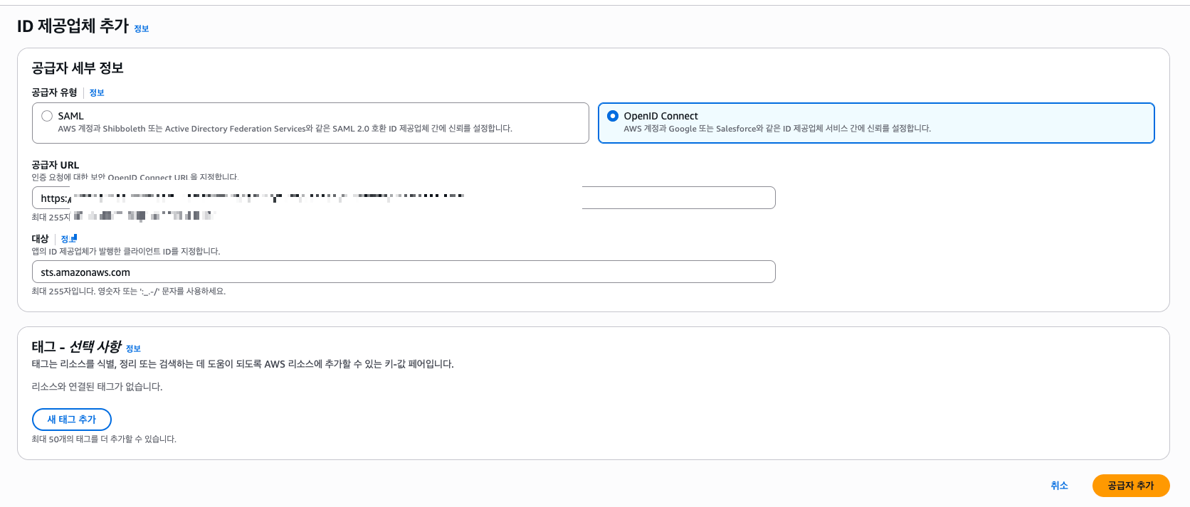OIDC 자격 증명 공급자 생성