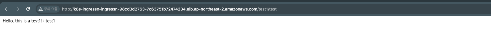 nlb 의 domain 을 확인하여 위에서 설정했듯 test1, test2 로 요청을 보내보도록 하겠습니다.