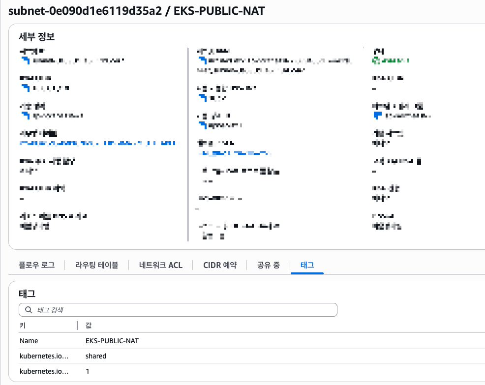 kubernetes.io/cluster/<cluster-name>=shared 태그는 이 서브넷이 해당 EKS 클러스터와 연동됨을 나타냅니다.