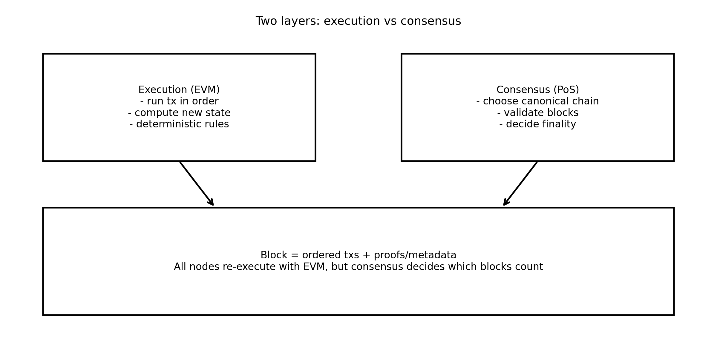 포인트: 실행(EVM)은 트랜잭션을 어떻게 처리할지 규칙을 제공하고,