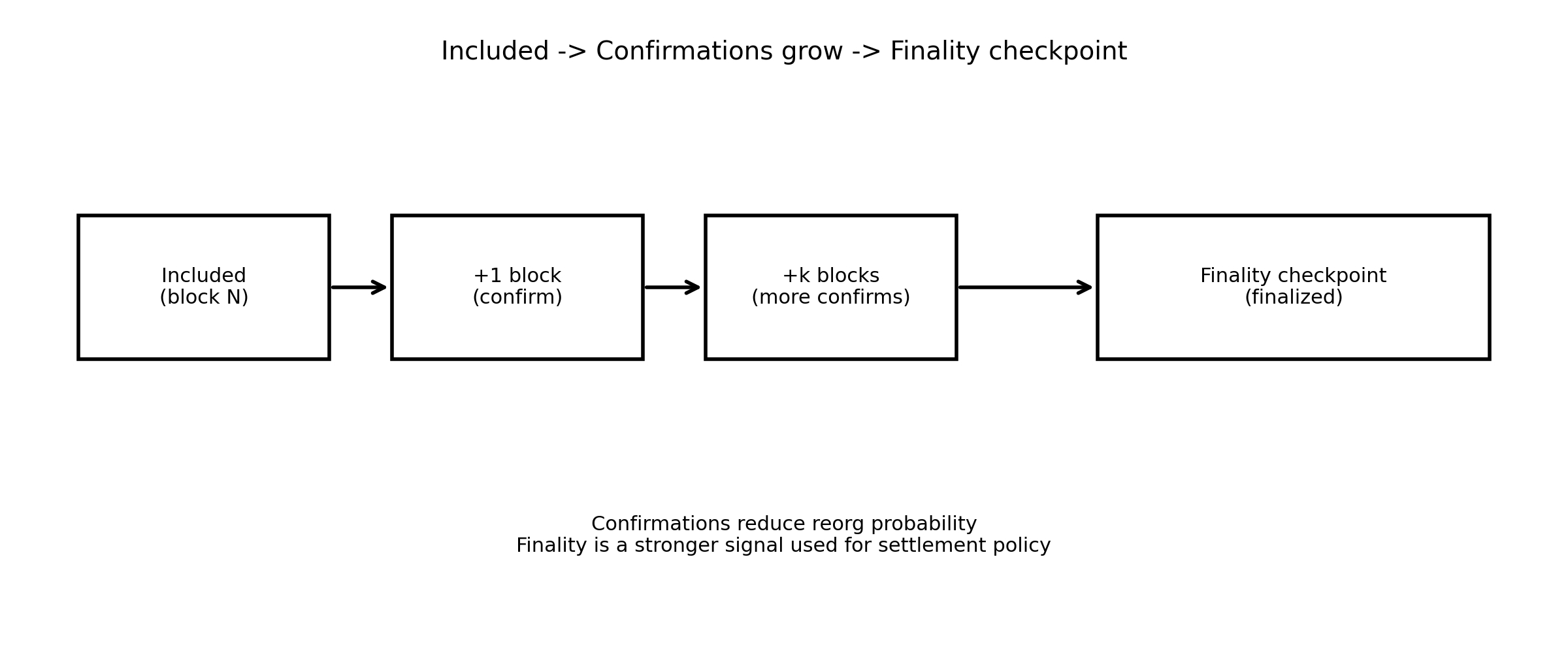 - confirmations는 finality를 예측하는 확률이 아니라 reorg 위험을 낮추는 지표