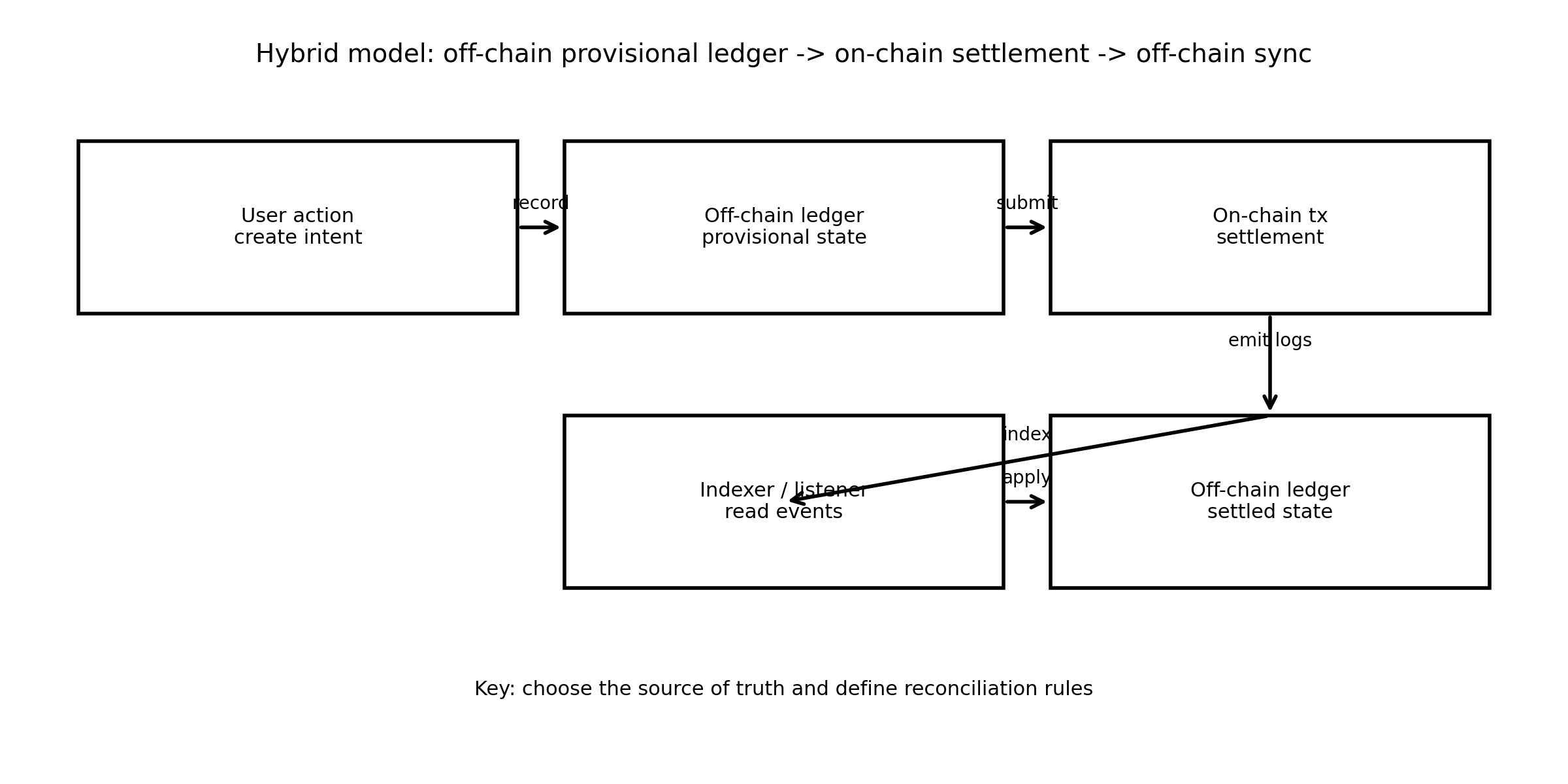 | 하이브리드 | 온체인은 최종 원장, 오프체인은 UX | 둘 다 | 정산 시점에 불일치가 드러날 수 있다 |