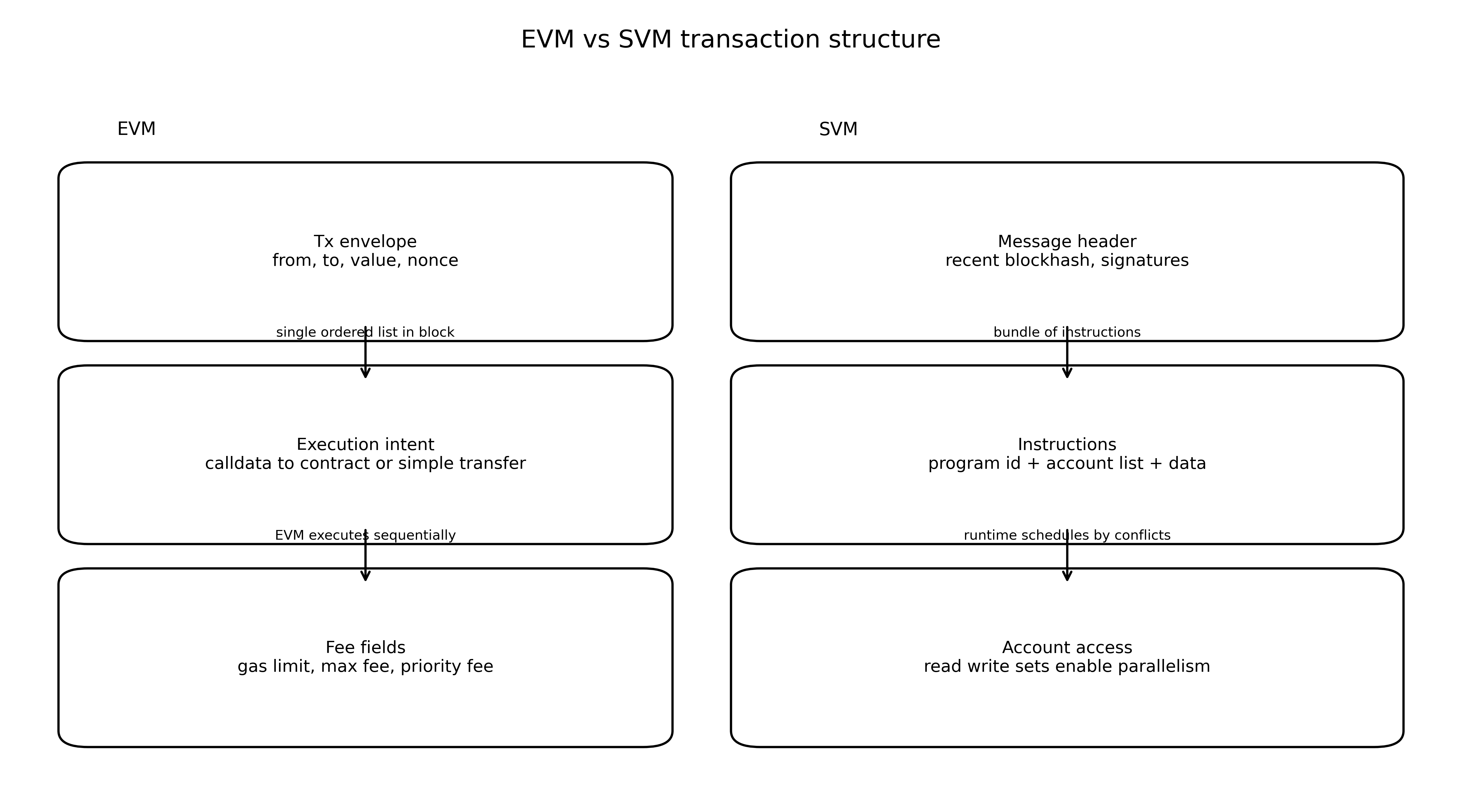 - EVM과 SVM은 표면적으로는 둘 다 지갑 서명과 트랜잭션 전송이지만