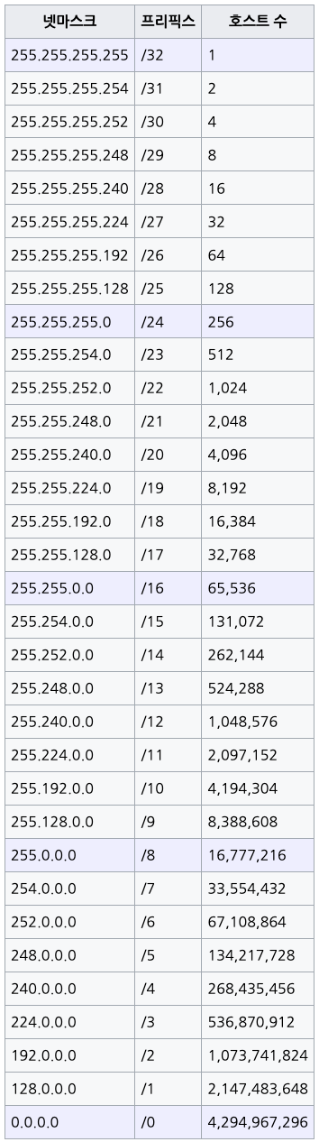 | 서브넷마스크 | |||||||