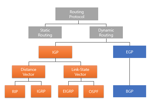 - AS간 라우팅용(EGP), AS내부 라우팅용(IGP)
