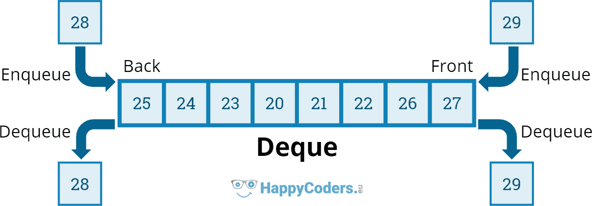두 개의 포인터를 사용하여, 양쪽에서 삭제와 삽입을 발생시킬 수 있다. 큐와 스택을 합친 형태로 생각할 수 있다.