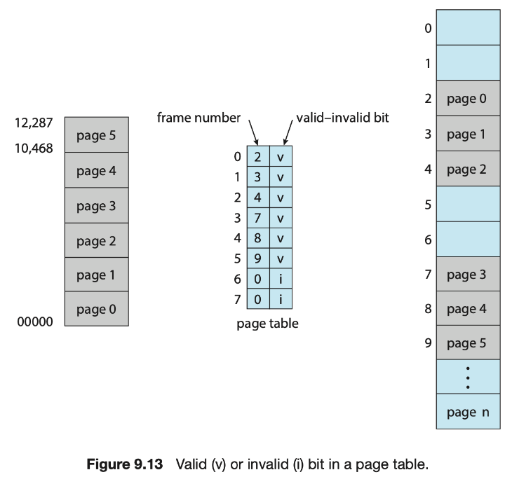 - 유효 비트 : 페이지에 접근하는 것이 합법적인지 검사